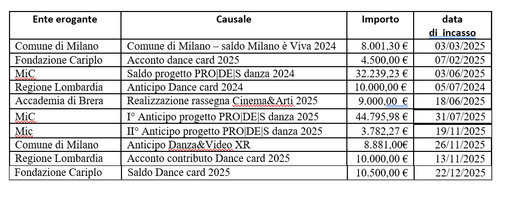 Per l’anno 2025 l’Associazione Cro.me Cronaca e memoria dello Spettacolo P.IVA e CF 11174090156 ha ricevuto i seguenti contributi pubblici, superando la somma di 10.000 euro: